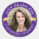 Os autocolantes personalizados de graduação com o título FORMANDO ANO CLASSE e nome do formando. O design apresenta bonés de formatura metálicos dourados falsos e confete dourado na sua escolha de cor de fundo (mostrada em roxo) que você pode mudar para uma cor escolar ou para uma cor favorita no EDIT. Use como selagens de envelope de correspondência de graduação ou obrigado favorável à festa de formatura. ASSISTÊNCIA: para obter ajuda com a modificação/personalização do design, alteração de cor, transferência do design para outro produto ou, se você quiser coordenar itens, entre em contato com o designer ANTES DE ENCOMENDAR através da guia MENSAGEM de bate-papo Zazzle ou por e-mail em makeitaboutyoustore@gmail.com.