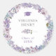 Formando Floral Púrpura. Adicione elegância personalizada aos seus favores de graduação com este adesivo rústico moderno, projetado com lilases de aquarelas, rosas de lavanda e flores silvestres azuis. Personalize o nome do formando, o ano da classe, os estilos de fonte, as cores e os tamanhos para um toque exclusivo.