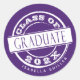 Este adesivo de formando feminino roxo apresenta uma "classe de" dentro de um círculo de texto branco que se parece com um selo. Basta inserir seu nome e ano de graduação. Use-o como um adesivo de decoração em favor da festa de formatura ou selo de envelope.