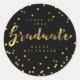 Etiquetas personalizadas de celebração em preto e ouro com lindas imagens gráficas de confete de folha de ouro falso e com o elegante texto fixo 'Formando' do script casual de pincel e texto dourado personalizável em fundo preto. Se precisar de assistência para personalizar seu produto, entre em contato comigo através da minha loja e eu ficarei feliz em ajudar. NOTA: Estas são imagens gráficas impressas em formato plano - não folhas de ouro reais. Tenho produtos correspondentes na minha loja.