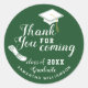 Crie adesivos personalizados de graduação verde e branco da classe 2025 com Obrigado por vir e ilustrações de boné e diploma de formando. O design de modelo facilita o tipo do nome do formando e um ano antes do pedido. A cor de fundo é fácil de mudar a dentro da ferramenta design.