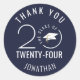 Adesivos personalizados de agradecimento, azul-marinho e branco, e/ou selos de envelope com o tema de formatura, apresentando um design moderno e elegante de tipografia para O ANO DA TURMA (ano editável) acentuado com um chapéu de formatura. Altere a cor do fundo para a cor da sua escola ou cor do tema da festa. ASSISTÊNCIA: Para obter ajuda com a modificação do design ou personalização, alteração de cor, transferência do design para outro produto ou se você gostaria de itens coordenados, entre em contato com o designer ANTES DE COMPRAR através do Zazzle Chat ou envie um e-mail para makeitaboutyoustore@gmail.com.