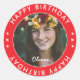 Adesivo Redondo Foto de aniversário feliz, feliz vermelho e simple
