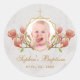 Adesivo Redondo Foto de Batismo de Menina Magnólia Rosa Floral Geo