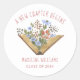 Lindo livro aberto com flores e a frase Um Novo Capítulo Começa é perfeito para um adesivo de formatura para amantes de livros! Tipografia feita à mão para a frase e o nome. O livro em aquarela é lindo e apresenta diferentes flores. Veja itens coordenados em nossa loja, Enchanted Finch.