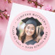 Adesivo Redondo Foto de graduada com borda ondulada rosa formatura