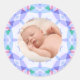 Pavimentos Bonito e Suaves Pavimentos de Foto de Natal Personalizados Padrões Redondos Clássicos. Pastas Felizes e Festivas Roxo, Verde e Cor-de-rosa Foto de Natal Personalizada Frame Round Dossiê Decoração de Carroçaria. Um adesivo colorido macio para o seu inverno e decorações caseiras, artesanatos e cartões multicolorido, roxo e verde. A design de quadro é um padrão geométrico de abstração feliz que assume os designs festivos de blocos coloridos tradicionais. Em cores pastéis de lilás de lavanda com verde de árvore de inverno, e cor-de-rosa bonito para a Terra das Maravilhas de inverno. Personalize-a substituindo a foto, pela sua, para uma maneira divertida de decorar seus envelopes para o Natal. A foto mostra um bebê dormindo. Tome suas memórias de Yuletide. Um presente de excelente para melhores amigos e irmãos e irmãs, avós ou casais. Uma manutenção favorável ao orçamento, para o abate de veículos ou para o artesanato.