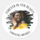 Um adesivo fúnebre simples, mas elegante, personalizado com sua fotografia favorita do seu amado e da tipografia que lê 'para sempre em nossos corações' e seu nome.