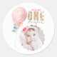 Adesivo Redondo Foto do primeiro aniversario do Balão Rosa Midro