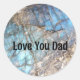 Este adesivo exibe uma foto azul e lacrimogênea do mineral Labradorite. No meio estão as palavras, "Ame seu Pai." O texto pode ser personalizado se desejar.