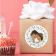 Convide amigos e família para o seu casamento com estes elegantes vestígios de eucalipto verde e personalizados do casamento 'Salve a Data'. Estes adesivos de casamento eucaliptos apresentam uma coroa botânica verde para mostrar sua foto favorita, e personalizar com nomes e data de casamento. Veja a coleção de casamento do eucalipto para fazer convites de casamento, favores de casamento e guardas. COPYRIGHT © 2020 Judy Burrows, Black Dog Art - Todos Os Direitos Reservados. Casamento Fotográfico Eucalyptus Greenery Salvar o adesivo redondo clássico de data