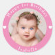 Adorável foto personalizada, nome e idade do clássico de aniversário cor-de-rosa.