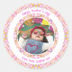 Adesivo Redondo Foto Personalizada Rosa Vibrante Feliz Verde Dia d