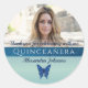 Na moda, elegante, borboleta azul Quinceanera 15 de aniversário Obrigado, com foto personalizada da garota.