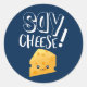 Adesivo Redondo Fotógrafo Engraçado De Queijo Fresco Diz Queijo