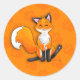 Dê um adesivo de raposa a um amigo especial ou como favoritos para festas! A imagem é uma pequena raposa sorrindo em um fundo de pata laranja.