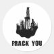 Equipamento de extração de gás natural, perfuração, poço e perfuração, em forma de um movimento manual. (virando a ave). O texto diz "Frack You".
