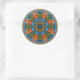 Esta impressionante mandala fractal é constituída por íris laranja e orquídeas-deslizantes verdes colocadas sobre tons de azul, laranja, verde e rosa.