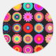 Um padrão composto por pequenos mandalas redondos caleidoscópicos coloridos, cada um é diferente.