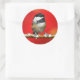 Adesivo Redondo Frango de Capas Negras no Fundo Vermelho do outono