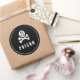 Crânio preto e branco e ossos cruzados em adesivo redondo. Excelente grande para bar de halloween; coloque nas garrafas de vinho ou outras garrafas de álcool para um tema de halloween. Mais cores disponíveis.