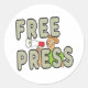 Free Press design mostra as palavras que estão sendo gritadas por um jornalista puxado à mão com touros - deixe-os falar!