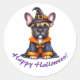 Adesivo Redondo Frenchie Halloween Purple Robe Witchy Hat