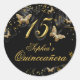 Adesivo Redondo Frente de Frente Dourada e Borboleta Preta