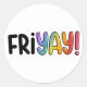 A palavra "Friyay!" em letra preta e arco-íris. "Yay" é colorido com um gradiente arco-íris de roxo, azul, verde, amarelo, laranja, vermelho e rosa. Eles também foram esboçados com um esboço preto para fazer as cores POP! O design fica em um fundo branco simples, mas eficaz. Prepare-se para o fim de semana com esses adesivos modernos e engraçados!