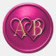 Adesivo Redondo Fuchsia Two Hearts Intertwined Monogram Wedding