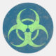 Adesivo Redondo Fundo Azul do Verde limão de Risco Biológico