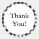 Adesivo Redondo Fundo de Gingham Preto e Branco Obrigado