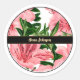 Adesivo Redondo Fundo Floral Vermelho Elegante Nome Personalizado