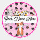 Adesivo Redondo Fundo Rosa Divertido com Roupa Clássica de Gatinho