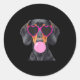 Adesivo Redondo Funny Dachshund Wearing Gles And Blowing Nk Bubble