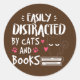 Adesivo Redondo Funny Easily Distracted by Cats and Books Cat