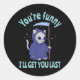 Engraçado e assustador design do Dia das Bruxas com um gato engraçado da Grim Reaper segurando uma cicatriz e dizendo "Você é engraçado, eu te pego por último". Um jogo perfeito para a celebração do Dia das Bruxas, assim como para o uso diário.
