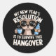 Adesivo Redondo Funny Hangover Survival Dog New Year's Resolution