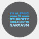 Adesivo Redondo Funny I'm Allergic To Studity I Break Out In Sarca