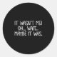 Adesivo Redondo Funny, It Wasn't Me . Sarcastic Joke Tee