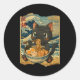 Adesivo Redondo Funny Kawaii Black Cat Ramen Noodle Bowl Japanese
