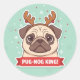 Adesivo Redondo Funny Pug Reindeer Holiday Sticker