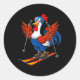 Adesivo Redondo Funny Rooster Skiing Adventure Cartoon