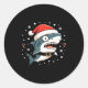 Adesivo Redondo Funny Shark Christmas Lights Santa Hat Ocean Desig