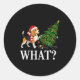 Adesivo Redondo Funny Xmas Beagle Pushing Christmas Tree Over Dog