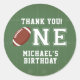 Obrigado americano de futebol, seus adesivos. Celebre seu pequeno quarterback com este design de aniversário de futebol fofo, criado com um fundo de futebol com "UM" que tem uma bola no lugar do "O". Há material adicional disponível no compro Metro-Events Zazzle e Metro-Event.com.