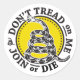 Todos estão familiarizados com a bandeira Gadsden ("Não me traga") com a cascavel enrolada. Eu basicamente redesenhei e o ditado "Join or Morte" em forma de crista redonda com cinquenta estrelas. Eu só queria um design legal/incrível que fosse diferente da bandeira e do batedor.