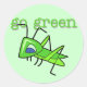 Um gafanhoto verde e um texto que lê Go Green sobre a consciência ambiental Tshirts, canecas, botões, cartões, autocolantes, sacos de tote, keychains e muitos outros itens.