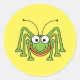 Um adesivo redondo mostrado com um gafanhoto de desenho animado fofo. Personalize este item ou comprar como está.