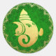 Adesivo Redondo Ganapati Dourado Clássico Deus Hindu Indiano Verde